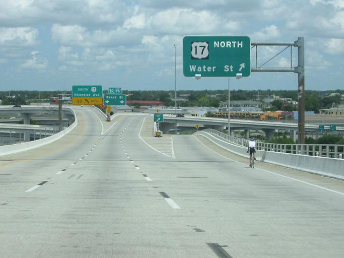 Keywords: Acosta Bridge northbound end.jpg Looking north at the north end of the w Acosta Bridge in w Jacksonville Florida Taken July 27 2003 by User SPUI This is an example of a bicycle using a freeway legally as there are no signs prohibiting bicycles spuiphoto Acosta Bridge Bicycles in Florida Roads in Florida Cycling in Florida Road signs in Florida U S Route 17 in Florida |