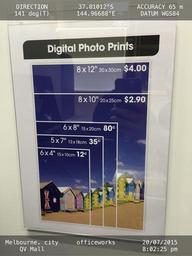 I am a frequent shopper at Officeworks. Imagine that you are a customer looking at the photo enclosed. The information on the sign does not relate to the actual photo size. Do you not think this is misleading? I know it is difficult to change the sign (photo enclosed) due to politically correct reasons.