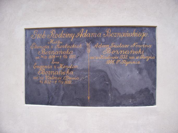 Keywords: Adam Boznanski 2.jpg pl Tablica na grobowcu rodziny Boznańskich gdzie pochowany jest mąż Olgi Boznańskiej Adam own Miezian 2008 Rakowicki Cemetery - B B