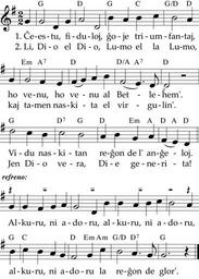 Keywords: adeste fideles esperanto oh come all ye faithful music christmas song famous notes