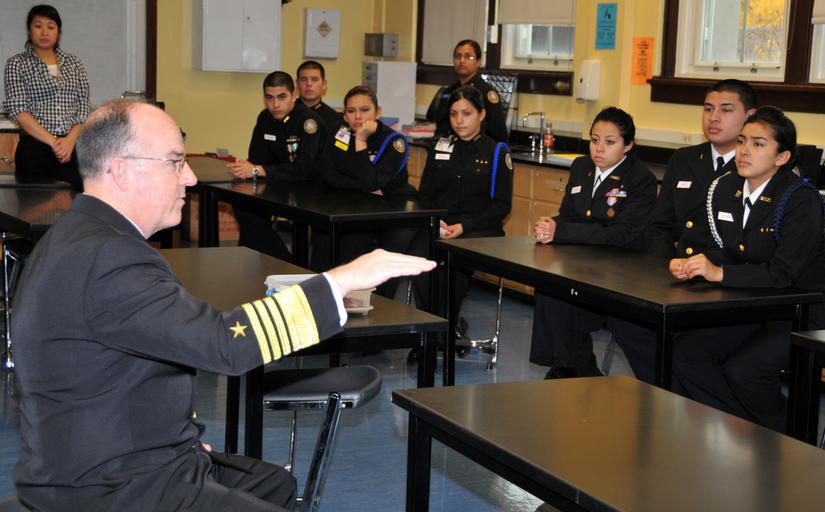 Keywords: Adm. J. C. Harvey Jr., commander, United States Fleet Forces Command, talks with students at Hyman G. Rickover Naval Academy.jpg en CHICAGO October 29 2009 Adm J C Harvey Jr commander United States Fleet Forces Command talks with students at Hyman G Rickover Naval Academy Oct 28 Harvey visited Rickover a Naval high school academy with more than 400 Naval Junior Reserve Officers Training Corps NJROTC cadets as part of the Chicago Public Schools CPS Principal for a Day program established as an annual event by the Chicago Mayor's Office in 1998 to allow businesses and organizations an opportunity to visit a school and shadow the principal to increase awareness of the accomplishments and challenges in CPS U S Navy photo by Scott A Thornbloom/Released 2009-10-28 22 49 08 https //www dvidshub net/image/219395/navy-admiral-visits-jrotc-cadets Scott Thornbloom other versions Custom license marker 2016 03 23 PD-USGov-Military-Navy Naval officers of the United States Navy Junior Reserve Officers Training Corps |