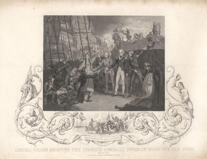 | Keywords: Admiral Nelson receiving the Spanish Admiral's Sword on Board the San Josef (Horatio Nelson, Viscount Nelson) by Daniel Orme.jpg  Admiral Nelson receiving the Spanish Admiral's Sword on Board the San Josef Horatio Nelson Viscount Nelson by Daniel Orme died 1837 See source website for additional information This set of images was gathered by User Dcoetzee from the National Portrait Gallery London website using a special tool All images in this batch have been confirmed as author died before 1939 according to the official death date listed by the NPG D17805 date but author died in 1837 Daniel Orme died 1837 PD-old-100 DEFAULTSORT Nelson Horatio National Portrait Gallery London |