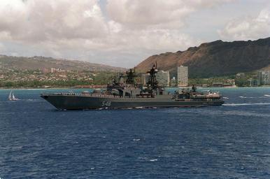 Keywords: Admiral Panteleyev.jpg The Russian guided missile destroyer ADMIRAL PANTELEYEV passes Diamond Head as part of a parade of ships during the 50th anniversary of V-J Day in celebration of the end of World War II The ADMIRAL PANTELEYEV is homeported at Vladivostok in the Sea of Japan Большой п отиволодочный ко абль Адми ал Пантелеев на па аде посвященном 50-летию победы на Японией у бе егов ост ова Оаху 1 сентяб я 1995 года http //www dodmedia osd mil/DVIC_View/Still_Details cfm SDAN DNSC9700775 JPGPath /Assets/Still/1997/Navy/DN-SC-97-00775 JPG www dodmedia osd mil 1995-09-01 PHCS TERRY COSGROVE PD-USGov-Military-Navy Admiral Panteleev ship 1990 Diamond Head 1995 in Hawaii |