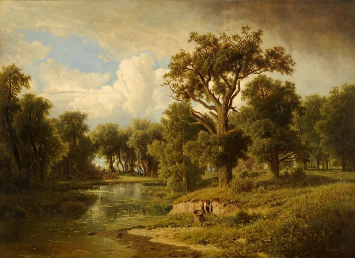 Keywords: Adolf Chwala Bewaldete Flusslandschaft mit Kräutersucherin.jpg Bewaldete Flusslandschaft mit Kräutersucherin Signiert oil on canvas 94 x 128 cm http //www duesseldorfer-auktionshaus de/ Düsseldorfer Auktionshaus by 1900 Adolf Chwala 1836 -1900 PD-old-100 Images from Düsseldorfer Auktionshaus Adolf Chwala Landscape paintings of Germany |