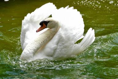 Keywords: adult swan in the water bird white floats water bird majestic threatening dominant