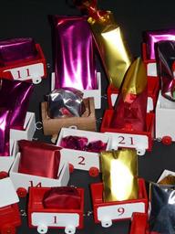 Keywords: advent calendar gifts nicholas train wagons packed surprise sparkle advent