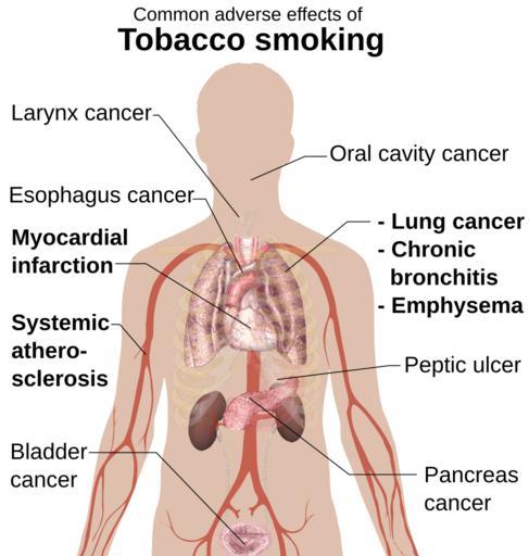 | Keywords: Adverse effects of tobacco smoking.svg en Common adverse effects of tobacco smoking See Wikipedia Tobacco smoking Health The more common are in bold face <P>To discuss image please see Template talk Human body diagrams References Figure 8-6 page 288 chapter 8 in cite book Mitchell Richard Sheppard; Kumar Vinay; Abbas Abul K ; Fausto Nelson Robbins Basic Pathology Saunders Philadelphia 1-4160-2973-7 8th edition All used images are in public domain Mikael Häggström gallery of 2014 2009-10-24 Adverse effects of tobacco smoking-numbered svg thumb left png-format Human body diagrams Tobacco-related graphics SVG diagrams of the adult male human body by Mikael Häggström |