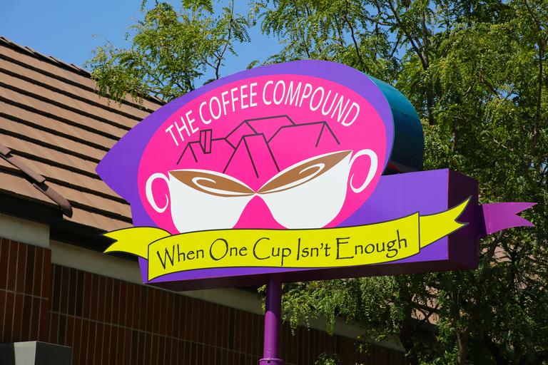 Keywords: advertise city street travel building business coffee hot cafe sign food restaurant drink meal lunch