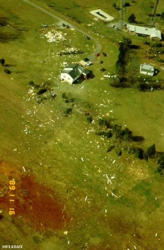 | Keywords: Aerial view 3 after the 1989 Huntsville Tornado.jpg en Damage from the November 15 1989 tornado to strike Huntsville Alabama photographed by NWS Birmingham during their storm survey 1989-11-16 http //www srh noaa gov/images/bmx/significant_events/1989/11_15/graphics/ C S;O D National Weather Service Birmingham Alabama office other versions PD-USGov 1989 Huntsville Tornado Aerial photographs of Alabama | ||||