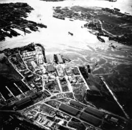 | Keywords: Aerial view of Pearl Harbor in 1943.jpg View of the U S Naval Base Pearl Harbor from the former Kuahua Island towards Ford Island Note the Essex-class aircraft carrier at Ford Island painted in dazzle camouflage Another carrier painted in Measure 21 camouflage is in 1010 dock with two Independence-class carrier moored at the pier Also visible is the raised battleship USS Oklahoma BB-37 at Ford Island LOC-image hi0645 photos 219567p http //www loc gov/pictures/item/hi0645 photos 219567p/ HAER HI-53-7 1943 David Franzen frame removed PD-USGov Pearl Harbor in World War II |