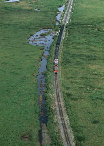 Keywords: aerial train tracks railway view railroad cultivation grow agriculture green field plantation lines road