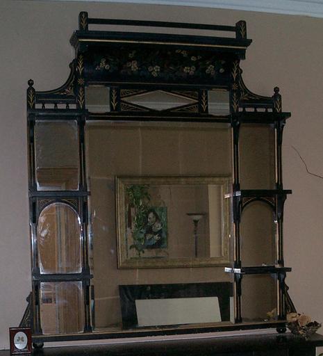 Keywords: Aesthetic movement furniture overmantle.jpg This is an Aesthetic Movement overmantle from Ireland circa 1890 An overmantle is the mirror that one places over the mantle of a fireplace It is notable for its classic Aesthetic features including Ebonized wood with gilded highlights in the carvings Use of stylized peacock feathers they look like a hieroglyphics of ferns and stylized flowers A colored painting of a nature scene at the top in this case several colored birds within a bough of flowers Copyright notes I took this digital photograph I release it to the public domain The premise is to help people understand what aesthetic movement furniture is own 2007-03-31 Undisputedvoiceofreason talk Uploads This is an Aesthetic Movement overmantle from Ireland circa 1890 An overmantle is the mirror that one places over the mantle of a fireplace It is notable for its classic Aesthetic features including Ebonized wood with gilded highlights in the carvings Use of stylized peacock feathers they look like a hieroglyphics of ferns and stylized flowers A colored painting of a nature scene at the top in this case several colored birds within a bough of flowers Copyright notes I took this digital photograph I release it to the public domain The premise is to help people understand what aesthetic movement furniture is Undisputedvoiceofreason en Original upload log en wikipedia ftcg page en wikipedia Aesthetic_movement_furniture_overmantle jpg wikitable - 14 46 31 March 2007 739 × 813 246 562 bytes Undisputedvoiceofreason w en <nowiki>I took this digital photograph I am the copyright holder I release it to the public domain The premise is to help people understand what aesthetic movement furniture is </nowiki> Overmantels Aesthetic Movement furniture |