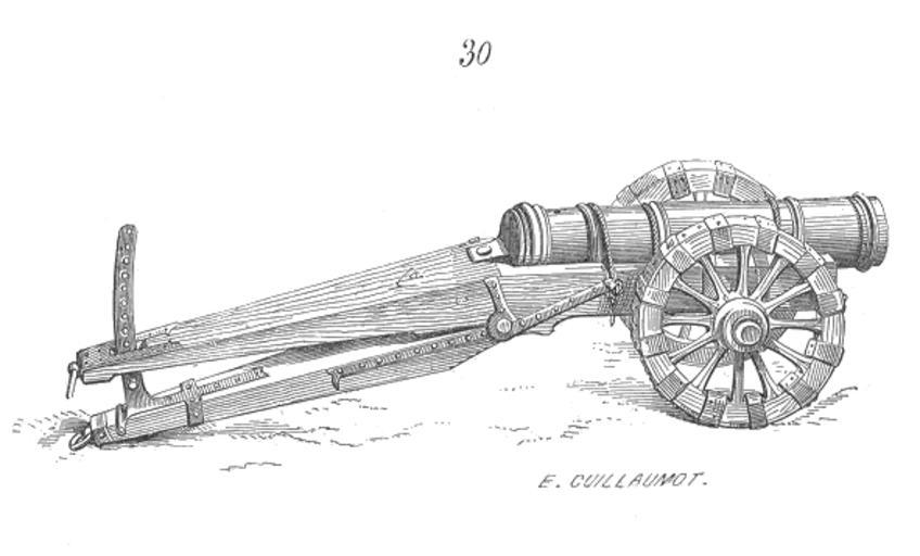 Keywords: Affut.sur.roues.2.png On chercha donc à rendre cette manœuvre plus facile Au lieu de faire mouvoir toute la membrure supérieure sur un axe placé sous la gueule de la pièce ce fut la partie inférieure de l'affût qu'on rendit mobile et au lieu de placer le boulon en tête on le plaça au droit de la culasse 30 l'effort pour soulever la pièce était ainsi de beaucoup diminué parce que le poids de celle-ci se trouvait toujours reporté sur l'essieu et que plus on soulevait la queue de l'affût moins le poids du canon agissait sur la membrure Viollet-le-Duc Ranged weapon Viollet-le-Duc Medieval gunnery and artillery |
