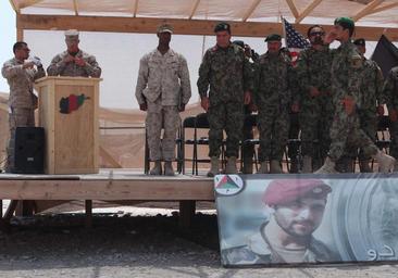 Keywords: Afghan combat medic course graduates ready for field operations 110707-N-DR248-011.jpg en Afghan National Army graduates step on stage to receive their Combat Medic course completion certificate presented by ANA ™s high ranking leadership officials here July 7 This was the fourth edition of the course During the training ANA soldiers learned the skills an emergency medical technician needs in the field 2011-07-07 Petty Officer 1st Class Gino Flores https //www dvidshub net/image/425488 110707-N-DR248-011 2011-07-09 06 03 CAMP LEATHERNECK AF PD-USGov-Military-Navy Camp Leatherneck Images from DoD uploaded by Fæ |