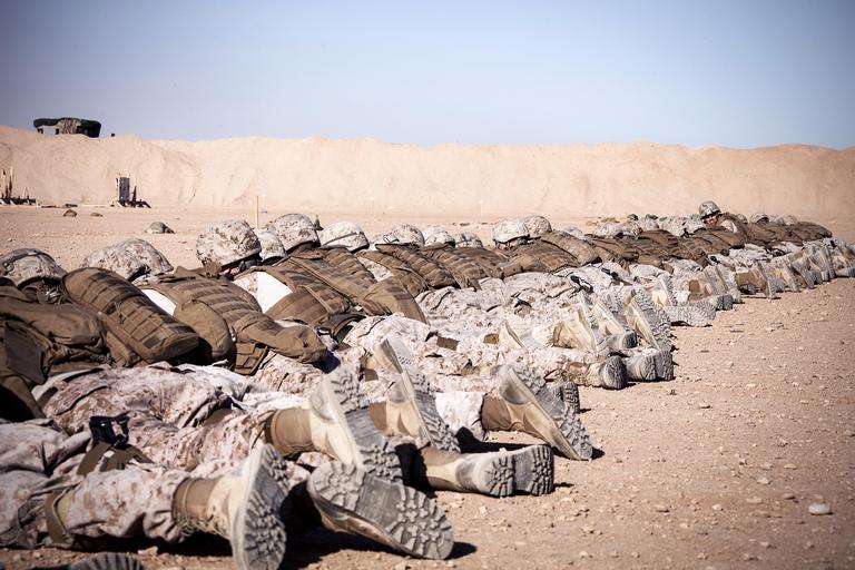 Keywords: afghanistan marines military defensive position sky desert outside row