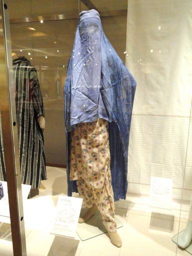 | Keywords: Afghanistan, woman's costume, 1970s-1980s - Bunka Gakuen Costume Museum - DSC05314.JPG Exhibit in Bunka Gakuen Costume Museum 3-22-7 Yoyogi Shibuya-ku Tokyo Japan I took this photograph 2011-09-11 21 31 42 Daderot Public domain Bunka Gakuen Costume Museum Burqa |