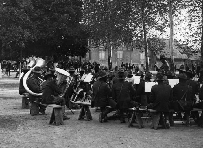 | Keywords: African American troops giving a military concert in an Alsatian village. - NARA - 533503.jpg Scope and content General notes 533503 Local identifier 165-WW-127 19 War Department 1789 - 09/18/1947 Still Picture Records Section Special Media Archives Services Division NWCS-S National Archives at College Park 8601 Adelphi Road College Park MD 20740-6001 1917 - ca 1919 Record group Record Group 165 Records of the War Department General and Special Staffs 1860 - 1952 Record group ARC 494 American Unofficial Collection of World War I Photographs compiled 1917 - 1918 Series ARC 533461 File unit File unit ARC Variant control numbers NAIL Control Number NWDNS-165-WW-127 19 Other versions <gallery> File American African American troops giving a military concert in an Alsatian village - NARA - 533503 tif tif File African_American_troops_giving_a_military_concert_in_an_Alsatian_village _-_NARA_-_533503 jpg jpg </gallery> Location possible NARA-cooperation PD-USGov Alsace in World War I Military life in World War I African American soldiers World War I forces of the United States in France African American history of the 1910s Military bands of the United States Army Military bands in World War I |