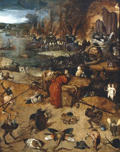 Keywords: After Jheronimus Bosch 006 colour.jpg LangSwitch Hieronymus Bosch Jheronimus Bosch The Temptation of Saint Anthony LangSwitch c 1520 or shortly afterwards 1515-1530 Ca 1520 of iets later 1515-1530 oil panel cm 88 72 Museo del Prado Madrid The Temptation of Saint Anthony by Jheronimus Bosch in the Museu Nacional de Arte Antiga Lisbon See also File After Jheronimus Bosch 004 jpg Museo del Prado inv no 2050 and File After Jheronimus Bosch 005 jpg Museo del Prado inv no 2051 Schilderij met parafrase van het middenpaneel van Antonius-drieluik van Jheronimus Bosch in het Museu Nacional de Arte Antiga in Lisbon Zie ook de zijluiken File After Jheronimus Bosch 004 jpg Museo del Prado inv nr 2050 en File After Jheronimus Bosch 005 jpg Museo del Prado inv nr 2050 Provenance by July 1942 Marie-Thérèse Countess de la Béraudière Paris by 1947 Mia Schmidt Avenue Montaigne Paris date unknown acquired by David Van Buuren 1886-1955 Brussels 1953 inherited by Alice D M van Buuren 1890-1973 Brussels from her husband David van Buuren Brussels 27 February/15 March 1965 ceded to the Museo del Prado Madrid by Alice D M van Buuren Brussels www terminartors com http //www terminartors com Home http //www terminartors com/bosch-hieronymus/temptations-of-st-anthony-triptych-central-panel-40576-p Info 3085 Other versions <table style background-color EEEFFF > <tr> <td>500x120px</td> <td valign top > File After Jheronimus Bosch 006 jpg<br />Version from Early Netherlandish Painting Volume V Geertgen tot Sint Jans and Jerome Bosch</td> <td>120x120px</td> <td valign top > File Temptation of Saint Anthony central panel by Bosch jpeg<br />Original</td> </tr> </table> PD-Art Paintings paraphrasing Jheronimus Bosch Early Netherlandish paintings in the Museo del Prado Bosch Hieronymus After |