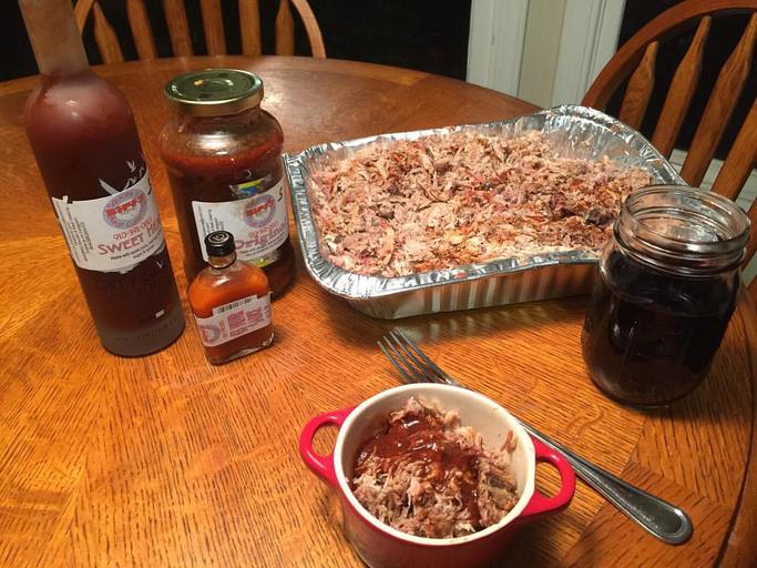 MAKE A MEME View Large Image After a trip to Pinehurst to see Mom. Dinner is some kickass Bar-B-Que from Bill Hall @bh43bbqsauce. Damn Tasty. All 3 sauces (Hot, Sweet and Original), a glass of red wine in my mason jar. Life is Good! #barbque Explore TW_Smith's 493 ...