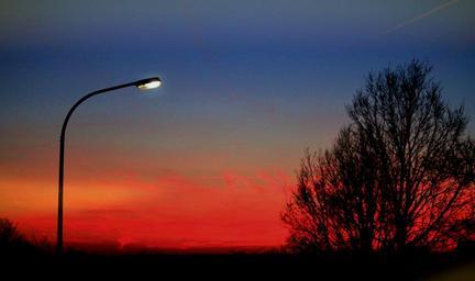 Keywords: afterglow evening sky sunset abendstimmung sky evening lantern street light twilight atmosphere dusk trees mood light red road branches dramatic sky color farbenspiel colorful blue