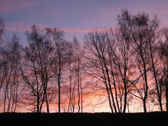 Keywords: afterglow forest tree sky sunset atmospheric pink glow aesthetic silhouette