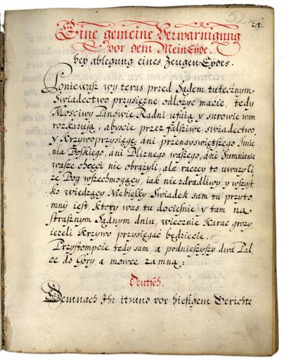 Keywords: AGAD AP WrocÅ‚aw Rota przysiÄ™gi skÅ‚adana w sÄ…dzie w jÄ™zyku polskim.png Rota przysiÄ™gi skÅ‚adanej w obecnoÅ›ci rady miejskiej przez ludność polskÄ… i w jÄ™zyku polskim <br /> KsiÄ™ga stanowi niezwykle cenny zabytek Å›lÄ…skiego prawodawstwa Zawiera roty przysiÄ…g skÅ‚adane przed sÄ…dem miejskim w obecnoÅ›ci czÅ‚onków rady miejskiej oraz przedstawicieli miejscowej Å‚awy Roty pogrupowano wedÅ‚ug spraw np sprawy sukienników lniarzy murarzy sprawy notarialne pÅ‚acenia ceÅ‚ i podatków sprawy dochodów Osobne przysiÄ™gi skÅ‚adali dzwonnicy ratuszowi wójtowie karczmarze sprzedawcy soli farbiarze i wielu innych Åšwiadkowie i inni zeznajÄ…cy podobnie jak obecnie mieli obowiÄ…zek zÅ‚ożyć przysiÄ™gÄ™ że bÄ™dÄ… mówili prawdÄ™ i tylko prawdÄ™ WiÄ™kszość mieszkaÅ„ców ówczesnej stolicy Dolnego ÅšlÄ…ska WrocÅ‚awia posÅ‚ugiwaÅ‚a siÄ™ jÄ™zykiem niemieckim Jednak okazuje siÄ™ że sporÄ… jej część stanowili Polacy mieszkajÄ…cy zarówno w samym mieÅ›cie WrocÅ‚awiu jak i w pod wrocÅ‚awskich wsiach Na ich użytek roty te przetÅ‚umaczono na jÄ™zyk polski Pod tym wzglÄ™dem jest to niezwykle rzadki zabytek dla badajÄ…cych historiÄ™ jÄ™zyka polskiego i jÄ™zykoznawców odmiana tego jÄ™zyka pochodzi przecież z czasów panowania w Polsce króla Jana III Sobieskiego KsiÄ™ga zawiera też roty w jÄ™zyku francuskim co wiÄ…zaÅ‚o siÄ™ z panujÄ…cÄ… wówczas modÄ… na jÄ™zyk i kulturÄ™ francuskÄ… a także w jÄ™zyku wÅ‚oskim i czeskim Każda rota jest w ksiÄ™dze poprzedzona tytuÅ‚em zapisanym czerwonym atramentem a pierwsze litery wyrazów poprzedzajÄ… ozdobne inicjaÅ‚y Do tekstów rot dołączone zostaÅ‚y teksty komentarzy prawniczych Zapisano też nazwiska osób zeznajÄ…cych w poszczególnych sprawach oraz daty skÅ‚adanych zeznaÅ„ Zarejestrowano w ten sposób zeznania jakie miaÅ‚y miejsce w latach 1694 do 1737 r Głównie sprawy te dotyczyÅ‚y mieszkaÅ„ców miasta WrocÅ‚awia w dzielnicy Nowe Miasto czy w poszczególnych okrÄ™gach koÅ›cielnych “ parafii Å›w Barbary 11 000 Dziewic Å›w Marii Magdaleny Å›w Elżbiety ale i na zeznania wzywano osoby zamieszkaÅ‚e w Swojcu Jaszkotlu Praczach RoÅ›cisÅ‚awicach Osobne sprawy dotyczyÅ‚y ludnoÅ›ci żydowskiej KsiÄ™ga zaopatrzona jest w indeks spraw <br /> Miejsce WrocÅ‚aw<br /> Publikacja źródÅ‚a Nie publikowane<br /> Opis zewnÄ™trzny KsiÄ™ga oprawna oryginaÅ‚ jÄ™zyki niemiecki polski francuski 231 kart pergaminowych o wymiarach 225 x 260 mm oprawa skórzana z okuciami karty z ozdobnymi inicjaÅ‚ami<br /> Miejsce przechowywania AP WrocÅ‚aw Akta miasta WrocÅ‚awia sygn 898 dawna H 13 k 83<br /> Autor komentarza Roman Stelmach<br /> Autor fotografii Ryszard Bacmaga 1702 Archiwum Główne Akt Dawnych author PD-old-100 History of WrocÅ‚aw Media contributed by AGAD presented in former polska pl portal Uploaded with VicuñaUploader |