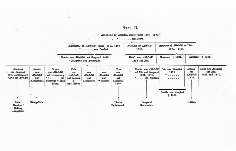 | Keywords: Ahlefeldt Stammtafel 02.jpg de Stammtalfel der Adelsfamilie von Ahlefeldt aus dem Jahr 1869 Scan aus dem Buch Die Schleswig-Holsteinische Ritterschaft aus dem Jahr 1869 L von Ahlefeldt und W A von Rumohr 1869 PD-old Family trees of Ahlefeldt family |