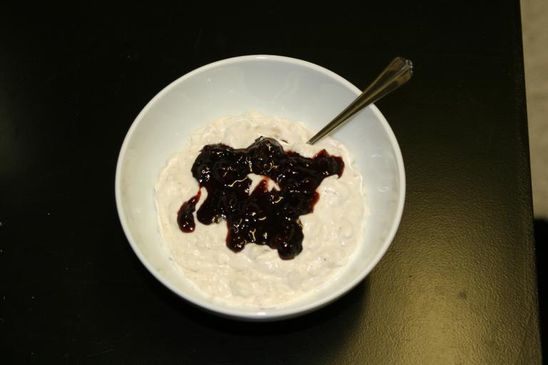 Keywords: Ailin21VeganRisalamande.JPG en Vegan risalamande Danish rice dessert with almonds own AilinParsa Cc-zero Vegan food Risalamande