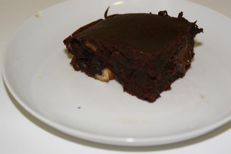 Keywords: Ailin22VeganChocolateCake.JPG en Vegan chocolate cake with walnut and pieces of chocolate own AilinParsa Cc-zero Vegan chocolate cakes