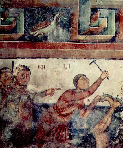 | Keywords: Ainaud 2.jpg  Romanesque fresco depicting a martyrdom from the entrance wall to the Collegiate Church of San Pietro e Sant'Orso Aosta Italy Plate 2 of Romanesque Painting by Jean Ainaud London Weidenfeld Nicholson 1963 11th or 12th centuries AD Author Romanesque frescos in Italy Frescos in Aosta Sant'Orso Aosta PD-Art  |