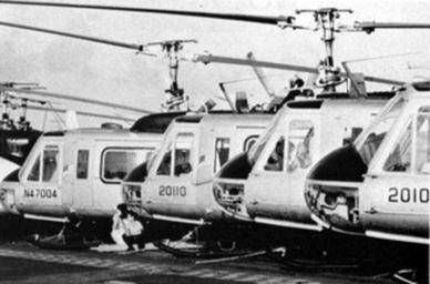 Keywords: Air America Bell 205s on USS Hancock (CVA-19) in 1975.jpg Air America Bell 205 helicopters aboard the U S Navy aircraft carrier USS Hancock CVA-19 in May 1975 N47004 became famous through a series of photos taken while it was picking up evacuees on top of the Pittman Apartments 22 Gia Long Street Saigon on 29 April 1975 U S Navy photo http //www navysite de/cruisebooks/cv19-75/040 htm from the http //www navysite de/cruisebooks/cv19-75/index_004 htm USS Hancock CVA-19 1975 cruise book available at http //navysite de/cruisebooks/index html Navysite de 1975-05 USN PD-USGov-Military-Navy Aboard USS Hancock CV-19 Operation Frequent Wind Bell UH-1 Iroquois in the Vietnam War Air America Aircraft of the Central Intelligence Agency |