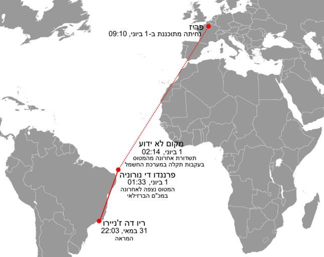 Keywords: Air France Flight 447 path-he.svg en Flight path and predicted flight path of Air France Flight 447 on 31 May/1 June 2009 fr Trajet du vol Air France 447 qui s'est déroulé durant la nuit du 31 mai/1er juin he נתיב הטיסה ש טיסת אייר פראנס 447 ב-31 במאי/1 ביוני 2009 Voo Air France 447 de Strecke des Air France-Fugs 447 am 31 Mai/1 Juni 2009 Hebräische Beschriftung http //commons wikimedia org/wiki/File Air_France_Flight_447_path svg Rutja76 Italian translation of File Air_France_Flight_447_path svg by Jolly Janner File Air France Flight 447 path svg Jolly Janner hebrew and cut MT0 2009-10-06 File Air France Flight 447 path png AF447 2009-05-31 overnight 2009-06-01 flight paths SVG diagrams in Hebrew