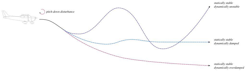 Keywords: Aircraft dynamic longitudinal stability.svg thumb Note that aircraft can also by statically unstable Diagram showing the three main cases for aircraft pitch dynamic stability Here all three cases are for a statically stable aircraft Following a pitch disturbance three cases are shown Aircraft is dynamically unstable although statically stable ; Aircraft is dynamically damped and statically stable ; Aircraft is dynamically overdamped and statically stable 2012-03 own schematics File C 172 line drawing svg Aircraft drawing public domain by User Werneuchen Olivier Cleynen and User Werneuchen cc-zero Uploaded with UploadWizard Aircraft stability diagrams SVG aviation |