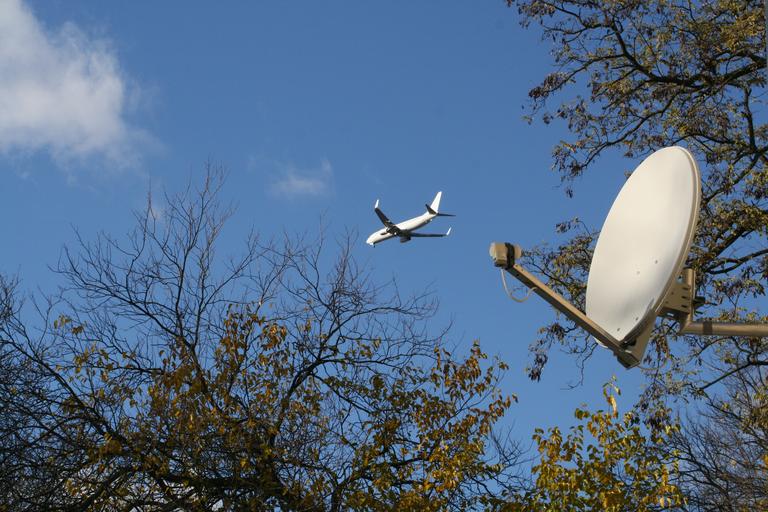 Keywords: aircraft fly sky flyer clouds flight blue aviation travel aircraft noise airliner airline travel landing passenger aircraft machine air traffic antenna parabolic mirrors parabolic antenna trees