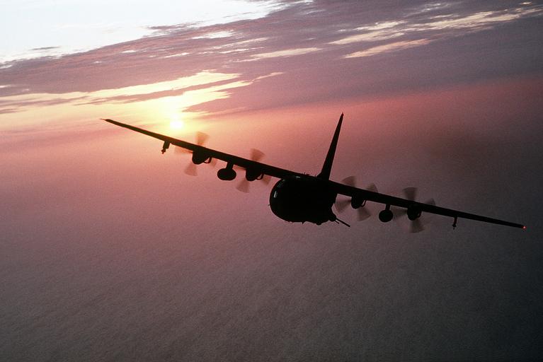 Keywords: aircraft silhouette cargo military ac-130 hercules flying flight transport turboprop aviation sky sun plane airplane