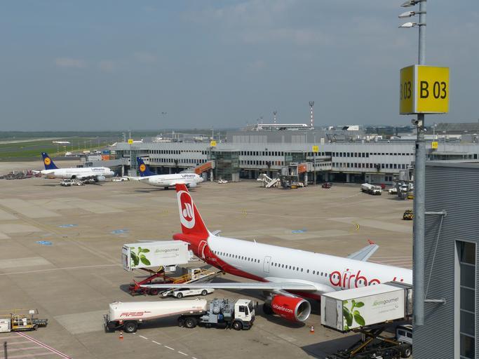 Keywords: airport fly aviation air traffic aircraft departure düsseldorf passenger aircraft tarmac tourism boarding gate tank wagon go away