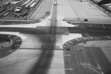 Keywords: airport runway tarmac airplanes transportation travel black and white