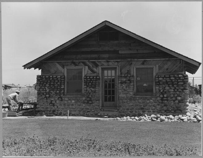 | Keywords: Airport tract, near Modesto, Stanislaus County, California. Another type of home entirely self-built . . . - NARA - 521618.jpg Stanislaus County California Another type of home entirely self-built Scope and content Full caption reads as follows Airport tract near Modesto Stanislaus County California Another type of home entirely self-built one of the best in the airport community The cobbles are hauled from the river bed House has been two years building Family have lived in trailer at the back of their lot Father is on W P A General notes 521618 Local identifier 83-G-41377 Department of Agriculture Bureau of Agricultural Economics Division of Economic Information ca 1922 - ca 1953 NARA-Author Lange Dorothea 1895-1965 Photographer 1372774 <br /> Still Picture Records Section Special Media Archives Services Division NWCS-S National Archives at College Park 8601 Adelphi Road College Park MD 20740-6001 1940-05-10 Record group Record Group 83 Records of the Bureau of Agricultural Economics 1876 - 1959 Record group ARC 412 Photographic Prints Documenting Programs and Activities of the Bureau of Agricultural Economics and Predecessor Agencies compiled ca 1922 - ca 1947 documenting the period ca 1911 - ca 1947 Series ARC 521048 File unit File unit ARC Variant control numbers NAIL Control Number NWDNS-83-G-41377 Other versions <gallery> File Airport_tract _near_Modesto _Stanislaus_County _California _Another_type_of_home_entirely_self-built_ _ _ _-_NARA_-_521618 tif tif File Airport_tract _near_Modesto _Stanislaus_County _California _Another_type_of_home_entirely_self-built_ _ _ _-_NARA_-_521618 jpg jpg </gallery> NARA-cooperation PD-USGov Dorothea Lange Stone houses in California California Facades in California Modesto California History of Stanislaus County California Populated places in Stanislaus County California Stone walls in the United States Self-build Walls in California 1940 in California NARA images of Stanislaus County California Black and white photographs of California |