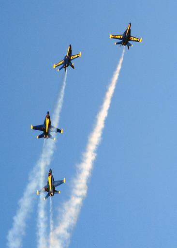 Keywords: airshow airplane blue angels demonstration team team work aircraft jet fighters aerobatics show