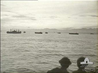 | Keywords: Aitape Area during allied landing.jpg  AITAPE AREA NORTH EAST NEW GUINEA 1944-04-22 US AND RAAF TROOPS WATCH FROM THE DECK OF A LANDING SHIP TANK LST THE ALLIED CONVOY COMING IN FOR THE LANDING AT KAROKO VILLAGE NEAR AITAPE OG0962 1944-04-22 Harrison John Thomas PD-Australia <br />The copyright has expired because this photo was taken prior to January 1 1955 The AWM record for this photo states that the copyright status is 'clear' The AWM however requires that the AWM watermark is not removed and that permission be sought for commercial use Higher resolution versions of this image may be ordered through the AWM Website at www awm gov au New Guinea campaign Black and white photographs of warships John Thomas Harrison |