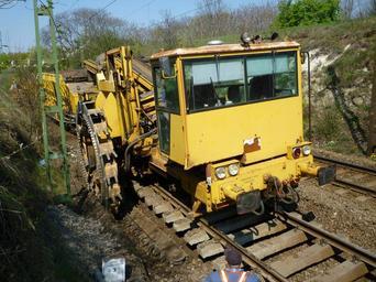 | Keywords: AK-01 Agyazatkotrogep 2.JPG en Harsco type GO-4S-II ballast undercutter machine road number ÁK-01 in Hungary hu Harsco gyártmányú GO-4S-II típusú ÁK-01 pályaszámú ágyazatkotrógép own Szerkesztő Joliet Jake 2011-04-18 Cc-zero 100px larger version Rail service vehicles of Hungary Harsco machines 2011 in rail transport in Hungary MÁV Felépítménykarbantartó és Gépjavító Kft |