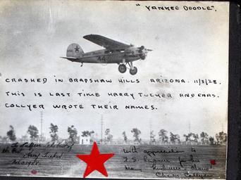 Keywords: luke luqueer lukeluqueer aviation golden age goldenage aircraft airplane nx4769 x4769 lockheed aircraft company lockheedaircraftcompany lockheed aircraft lockheedaircraft lockheed lockheed vega lockheedvega vega lockheed model 5 vega lockheedmodel5vega lockheed model 5 lockheedmodel5 lockheed vega 5 lockheedvega5 vega 5 vega5 yankee doodle yankeedoodle c/n 7 cn7 aviator harry tucker harrytucker tucker charles b.d. collyer charlesbdcollyer charles collyer charlescollyer c.b.d. collyer cbdcollyer c.b. collyer cbcollyer collyer outdoor text From the Frank S. "Luke" Luqueer Photo Collection The Frank S. "Luke" Luqueer Photograph Collection is composed of 4 large albums covering from the 1920s to the 1950s. The albums contain historic photos and correspondences from many important historical figures such as Jack Frye, Pat Amelia Earhart, Wiley Post, Howard Hughes, Hap Arnold, Jimmy Doolittle, Art Goebel, Charles Lindbergh, Douglas McArthur, and Ruth Elder to name a few. Many of the images have been autographed. Frank Luqueer is a notable aviation photographer. He bought his first camera in 1903 and devoted much of his life to taking photos of historic personalities and events in aviation history. Repository: San Diego Air and Space Museum Archive From the Frank S. "Luke" Luqueer Photo Collection The Frank S. "Luke" Luqueer Photograph Collection is composed of 4 large albums covering from the 1920s to the 1950s. The albums contain historic photos and correspondences from many important historical figures such as Jack Frye, Pat Amelia Earhart, Wiley Post, Howard Hughes, Hap Arnold, Jimmy Doolittle, Art Goebel, Charles Lindbergh, Douglas McArthur, and Ruth Elder to name a few. Many of the images have been autographed. Frank Luqueer is a notable aviation photographer. He bought his first camera in 1903 and devoted much of his life to taking photos of historic personalities and events in aviation history. Repository: San Diego Air and Space Museum Archive |