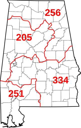 Keywords: Alabama area codes.svg Map of telephone area codes in Alabama based on File Alabama counties svg data from http //www psc state al us/News/areacode htm Alabama PSC / Bellsouth 2009-06-14 Spyder_Monkey Area code maps of Alabama