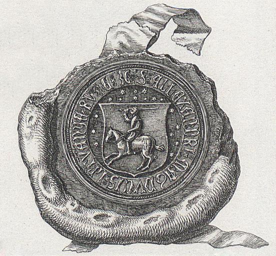 | Keywords: Alaksandar, Pahonia. Аляксандар, Пагоня (1501).jpg Аляксанд а Alaksandar з ге бам Вялікага Княства Літоўскага «Пагоня» «Pahonia» 1 Album K W Kielisińskiego Poznań 1853 <br>Biblioteka Narodowa A 2738/G XIX/III-45 <br>2 Vossberg F A Siegel des mittelalters von Polen Lithauen Schlesien Pommern und Preussen ein Beitrag zur Förderung diplomatischen genealogischer numismatischer und kunstgeschichtlicher Studien über ursprünglich slavische Theile der preussischen Monarchie mit XXV Kupfertafeln Berlin 1854 author 1501 1841 200px PD-old-100 Historical images of Pahonia Alexander of Poland Seals of Grand Duchy of Lithuania Seals of Lithuania |