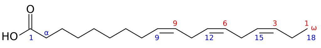 | Keywords: ALAnumbering.svg The chemical strucuture of alpha-linolenic acid showing physiological numbering red and chemical numbering blue conventions Chemical structure of alpha-linolenic acid showing differing numbering conventions created with ChemDraw en Image ALAnumbering png re-drawn in BKchem+perl+inkscape+vim 2007-10-23 en User Edgar181 I the creator of this work hereby release it into the public domain This applies worldwide In case this is not legally possible I grant any entity the right to use this work for any purpose without any conditions unless such conditions are required by law Edgar181 Polyunsaturated fatty acids Cis fatty acids |