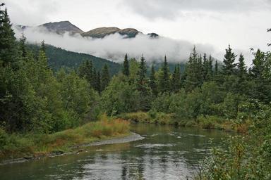 Keywords: alaska wilderness forest trees clouds cloud fog foggy nature autumn stream fall landscape water
