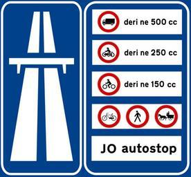 Keywords: Albanian traffic sign - autostradë 2.svg Albanian road sign for beginning freeroad own inspired by http //www dpshtrr gov al/component/content/article/62-informacione-ndihmese/174-struktura-e-testit-teorik-per-leje-drejtimi-te-kategorise-ab 2012-03-14 Gigillo83 Diagrams_of_road_signs_of_Albania Controlled-access highway signs |