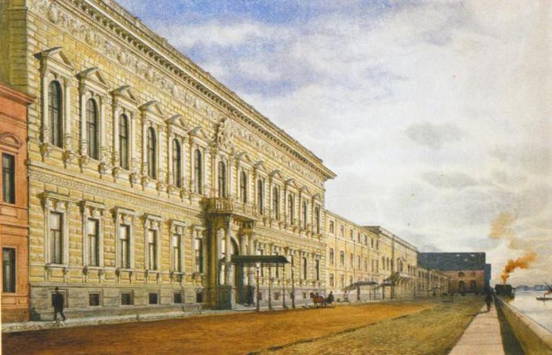 | Keywords: Albert Benois - Mansion of Baron Stieglitz on English Embankment - 1880s.jpg ru Дво ец ба она А Л Штиглица на Английской набе ежной Аква ель Альбе та Бенуа Конец 19 в en Palace of Baron А L Stieglitz at the Angliiskaya Embankment Watercolour by Albert N Benois Late 19th century s 1880 http //www encspb ru/en/bigimage php kod 2803986084 Creator Albert Benois PD-old-100 Uploaded with UploadWizard Palace of Grand Duke Pavel Alexandrovich English Embankment 1890s watercolor paintings Location of museum or gallery missing |
