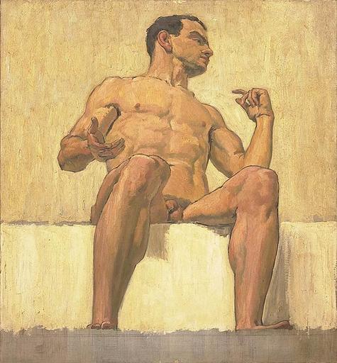 Keywords: Albert Maennchen Sitzender Männerakt.jpg Artwork Creator Albert Maennchen Studie für den Kammergerichtssaal in Berlin Oil on canvas 80 x 72 cm object history exhibition history credit line accession number place of creation http //www auktionshaus-wendl de/ Paintings of nude sitting men Albert Maennchen PD-old-auto 1935 |