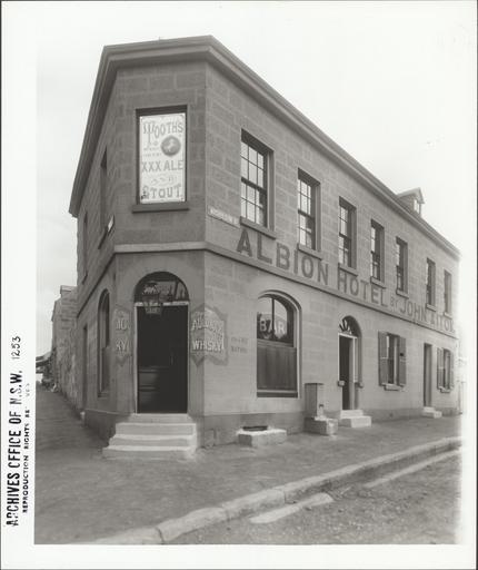 | Keywords: archives state records nsw staterecordsnsw newsouthwales blackandwhite hall oddfellows albion hotel albionhotel balmain nsw architecture building white background black and white Title: Albion Hotel, corner Darling and Nicholson Streets, Balmain - John Aiton held the licence from 15 May 1895 to 27 April 1898 (SMH 15 May 1895 p3, 28 April 1898 p3) Dated: by 27/04/1898 Digital ID: 4481_a026_000901 Rights: www.records.nsw.gov.au/about-us/rights-and-permissions We'd love to hear from you if you use our photos/documents. Many other photos in our collection are available to view and browse on our website using Photo Investigator. Title: Albion Hotel, corner Darling and Nicholson Streets, Balmain - John Aiton held the licence from 15 May 1895 to 27 April 1898 (SMH 15 May 1895 p3, 28 April 1898 p3) Dated: by 27/04/1898 Digital ID: 4481_a026_000901 Rights: www.records.nsw.gov.au/about-us/rights-and-permissions We'd love to hear from you if you use our photos/documents. Many other photos in our collection are available to view and browse on our website using Photo Investigator. |
